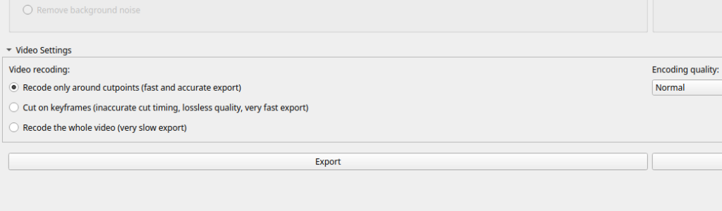 When exporting videos, there is now new section to choose between different video cutting modes and a setting to control video re-encoding quality.
