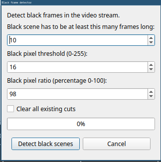 I added a new tool that automatically finds and cuts black frames from your video. This feature can be used to find ad breaks or transitions. Later I might expand it to a more featured ad detection tool with more features, but this is a start.